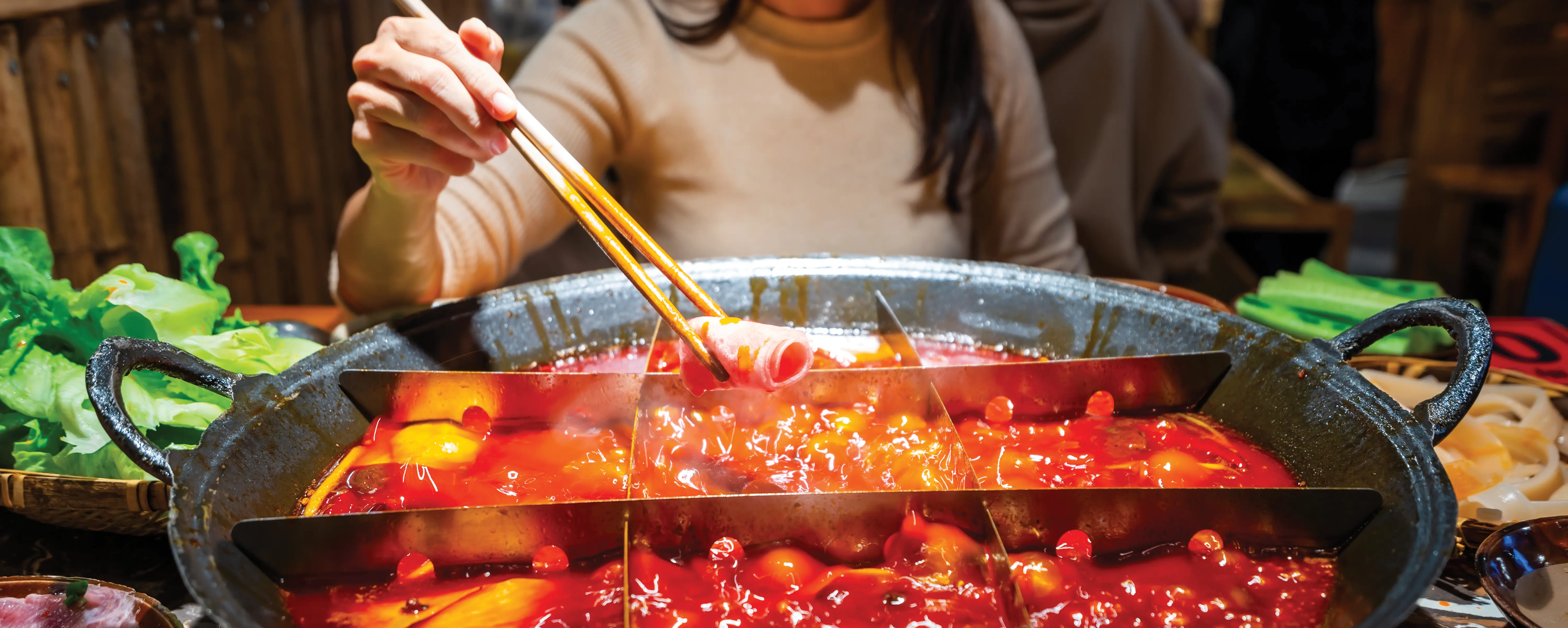 A trip to Chongqing would be incomplete without trying its unique cuisines, known for its bold flavours and rich spices. Chongqing Hot Pot is the heart of the city's culinary scene. Traditionally cooked in a bubbling, spicy broth with Sichuan peppercorns, hot pot is a social dining experience that invites you to cook an array of meats, seafood, and vegetables right at your table. Don’t miss local spots like Qi Qi Hot Pot or Haidilao for an authentic experience.