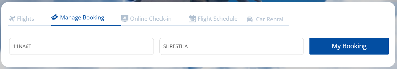 Kindly enter your Passenger Name Record (PNR) and Surname to access the manage booking page.