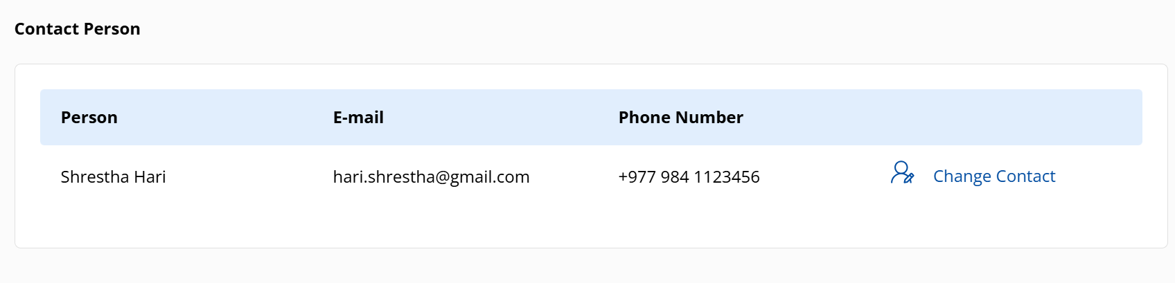 Step 2: After accessing the manage booking page, Contact Person details will be displayed at the end of the page.