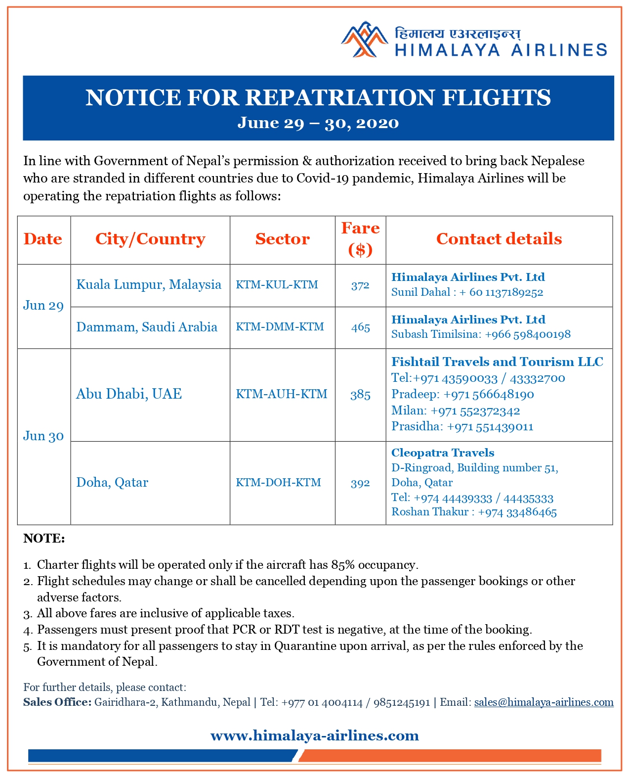 Repatriation Flights - Jun 29-30, 2020