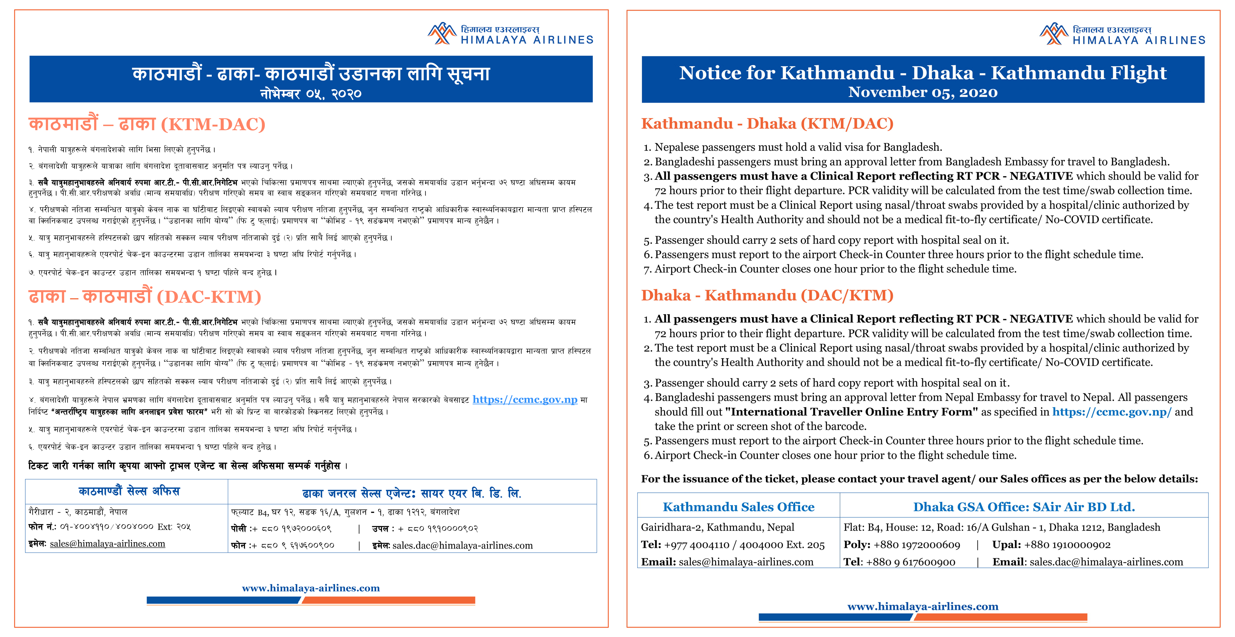 Kathmandu-Dhaka-Kathmandu Flight - Novemeber 05, 2020