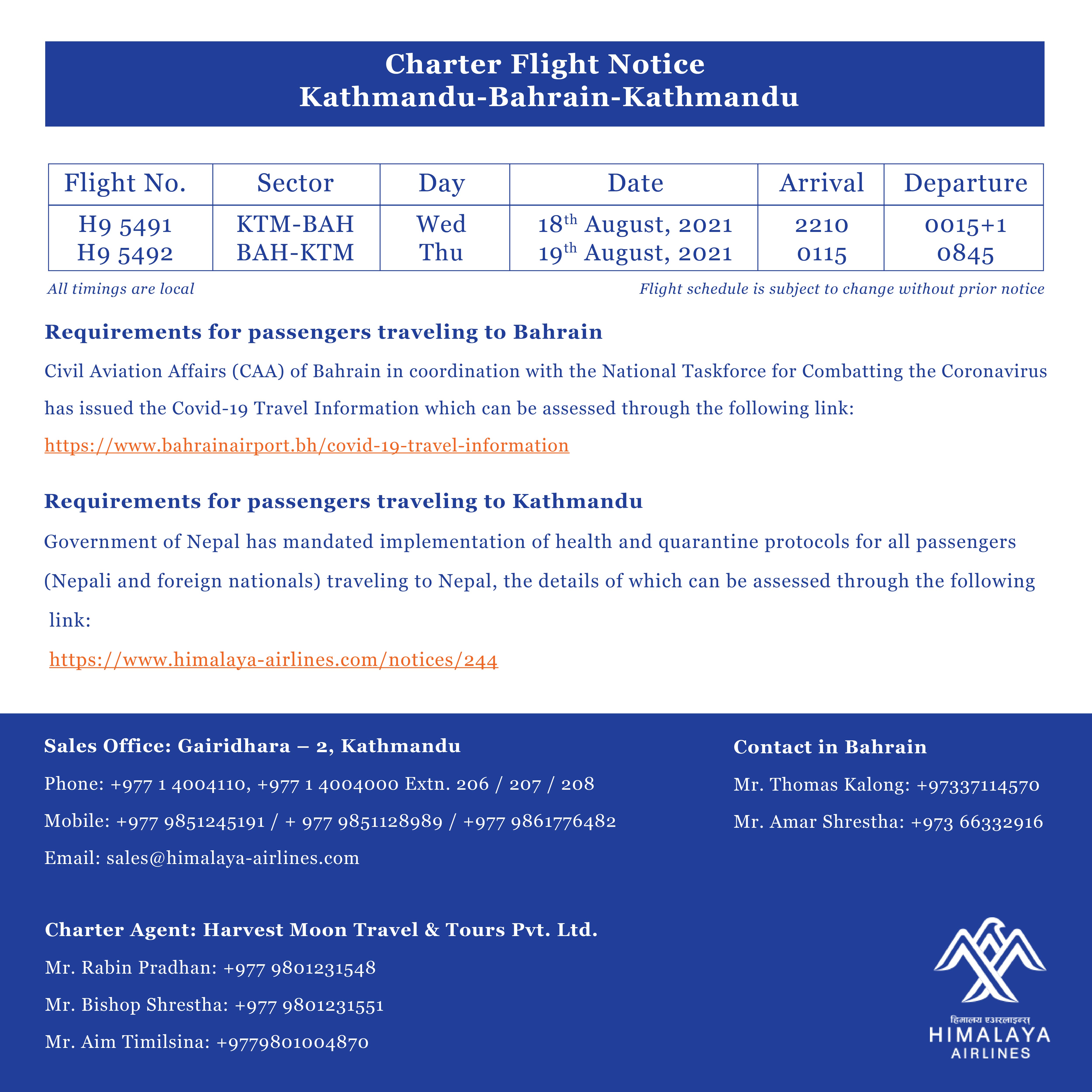 Charter flight notice KTM-BAH-KTM