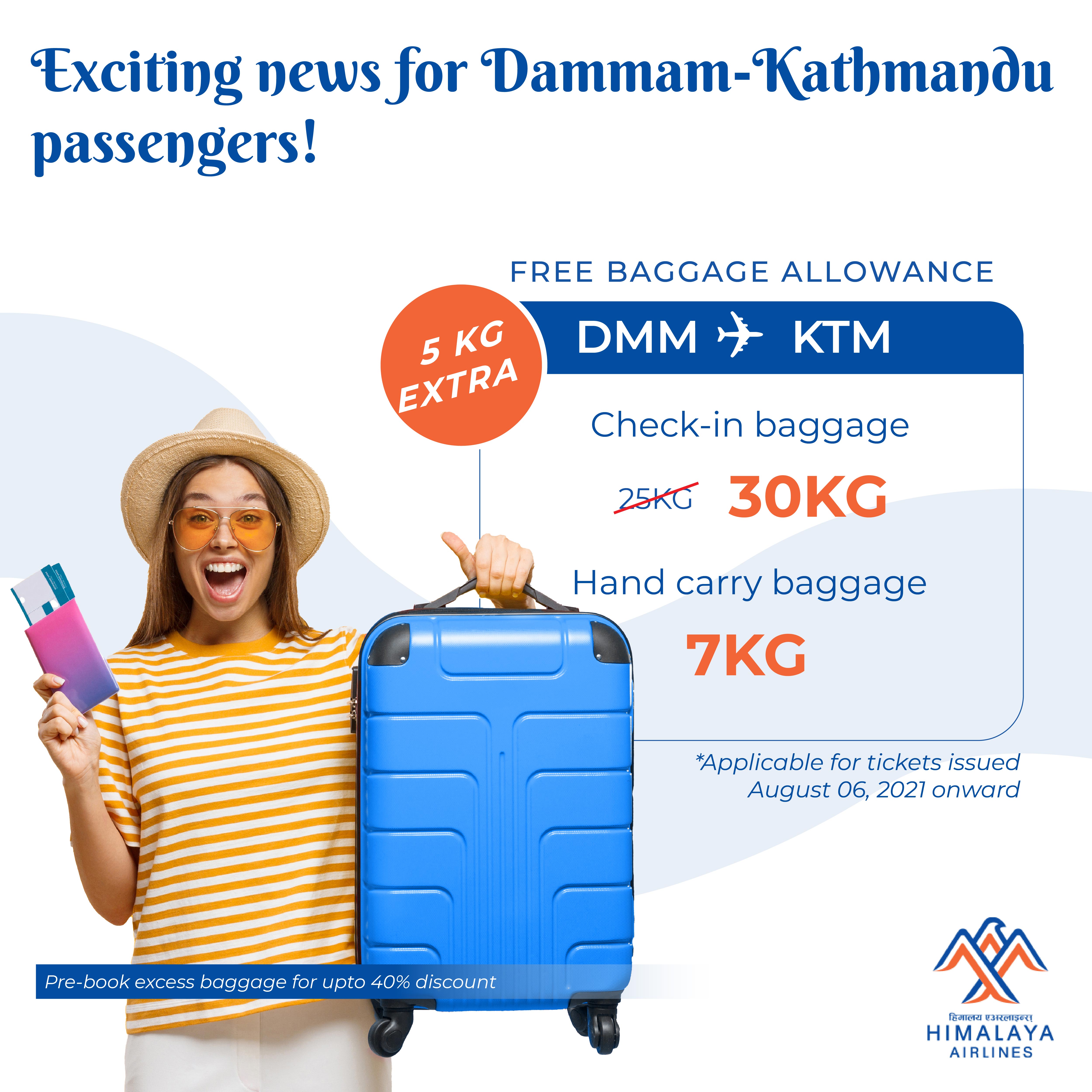 Extra Free Baggage Allowance for Dammam-Kathmandu Passengers