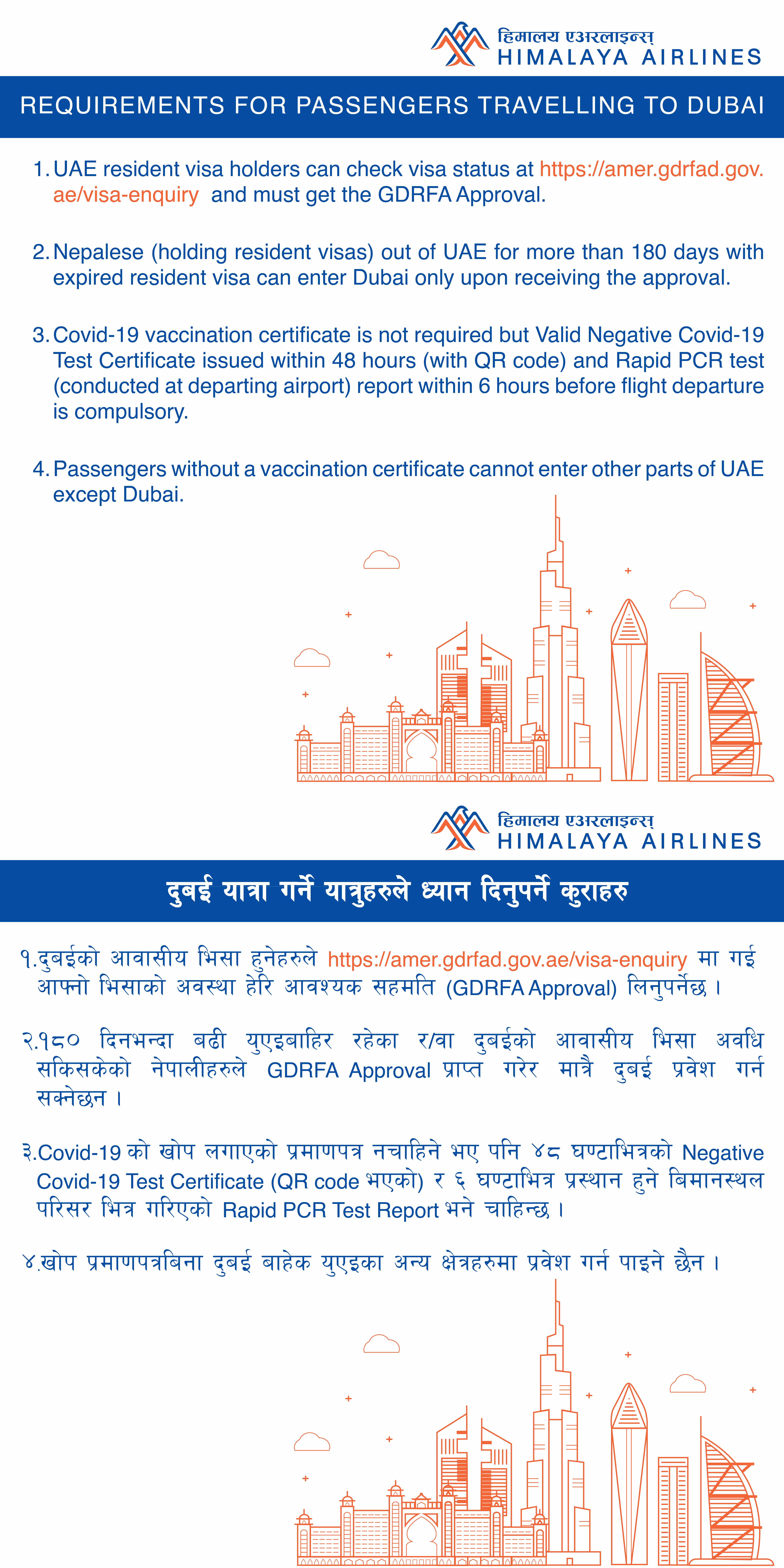 Requirement for passengers reaching Dubai