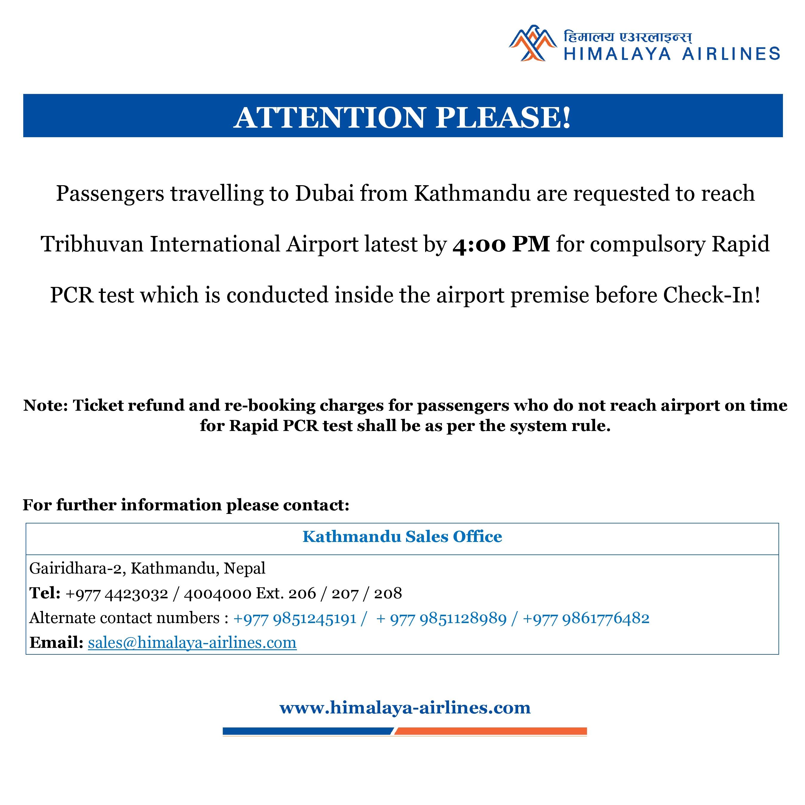 Important notice for rapid pcr test for KTM-DXB passengers