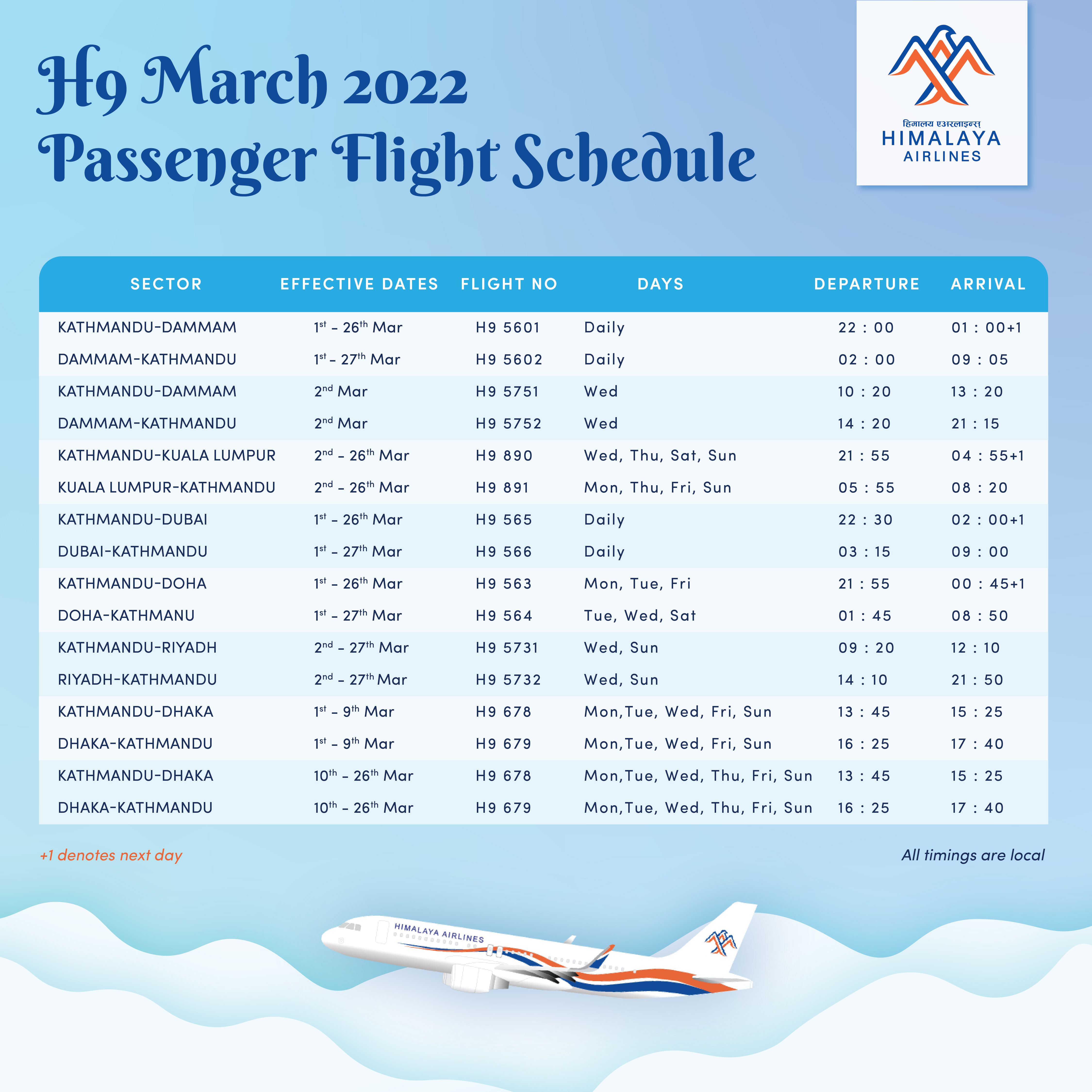 H9 March 2022 Passenger Flight Schedule