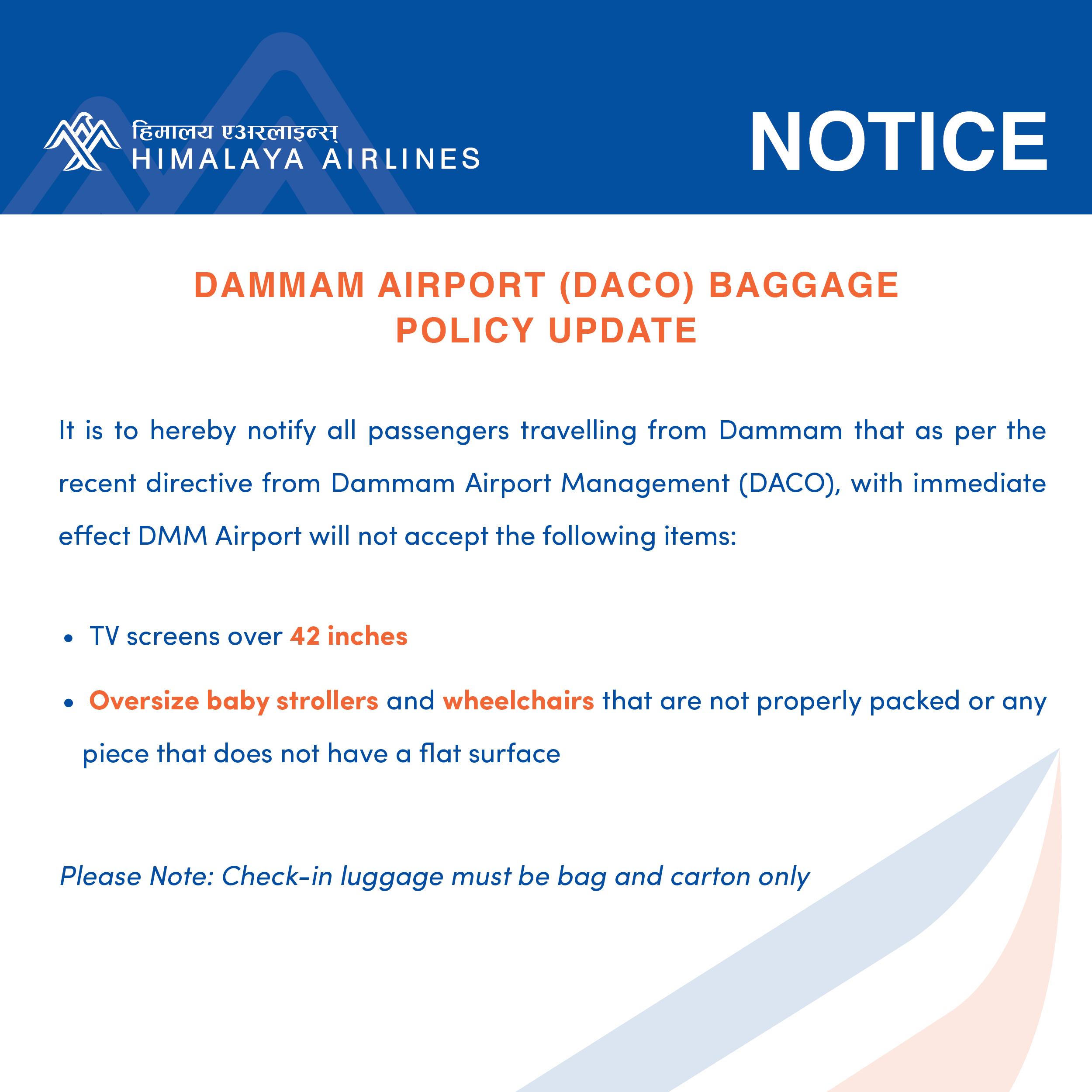 Dammam Airport(DACO) Baggage Policy Update