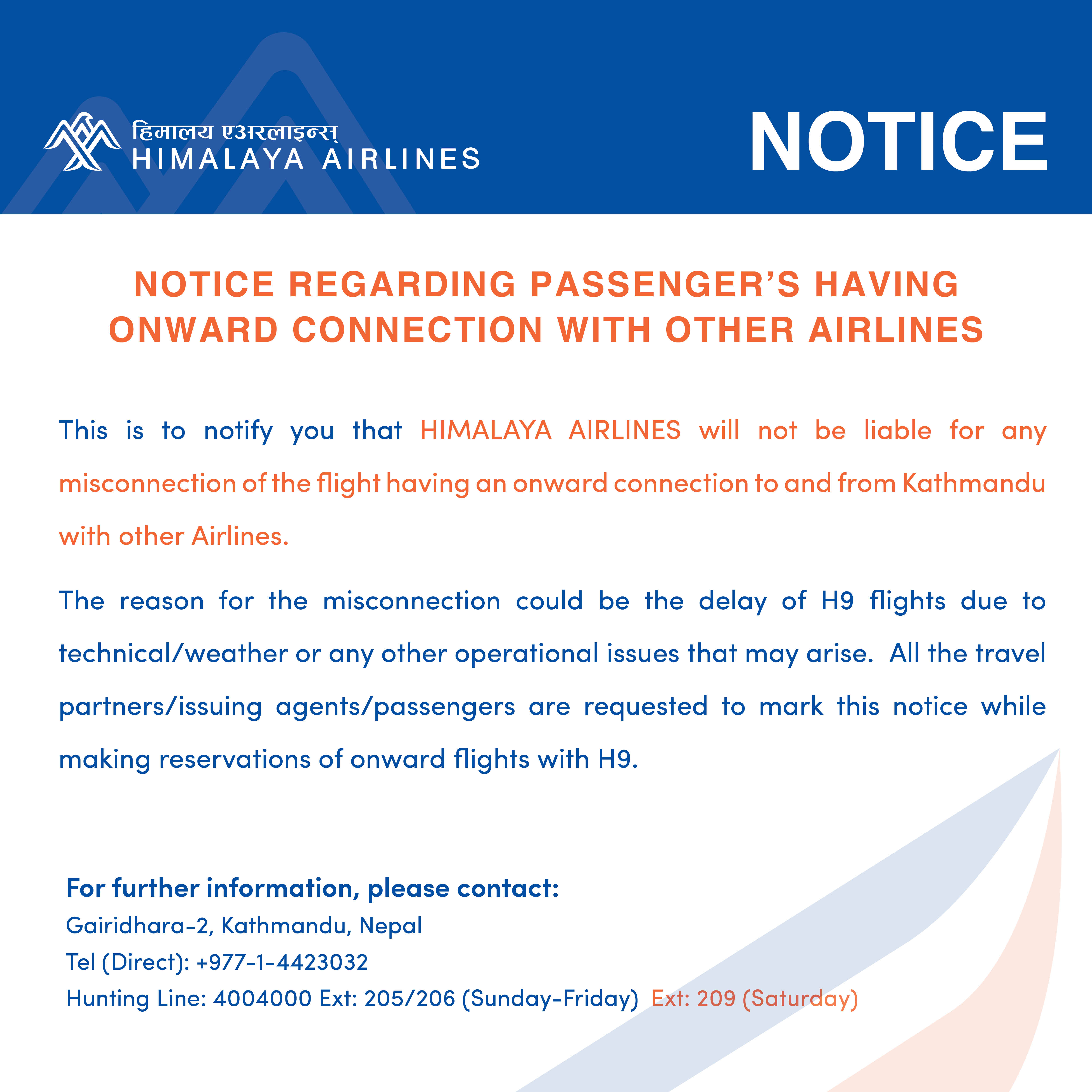 Notice Regarding Passengers Having Onward Connection