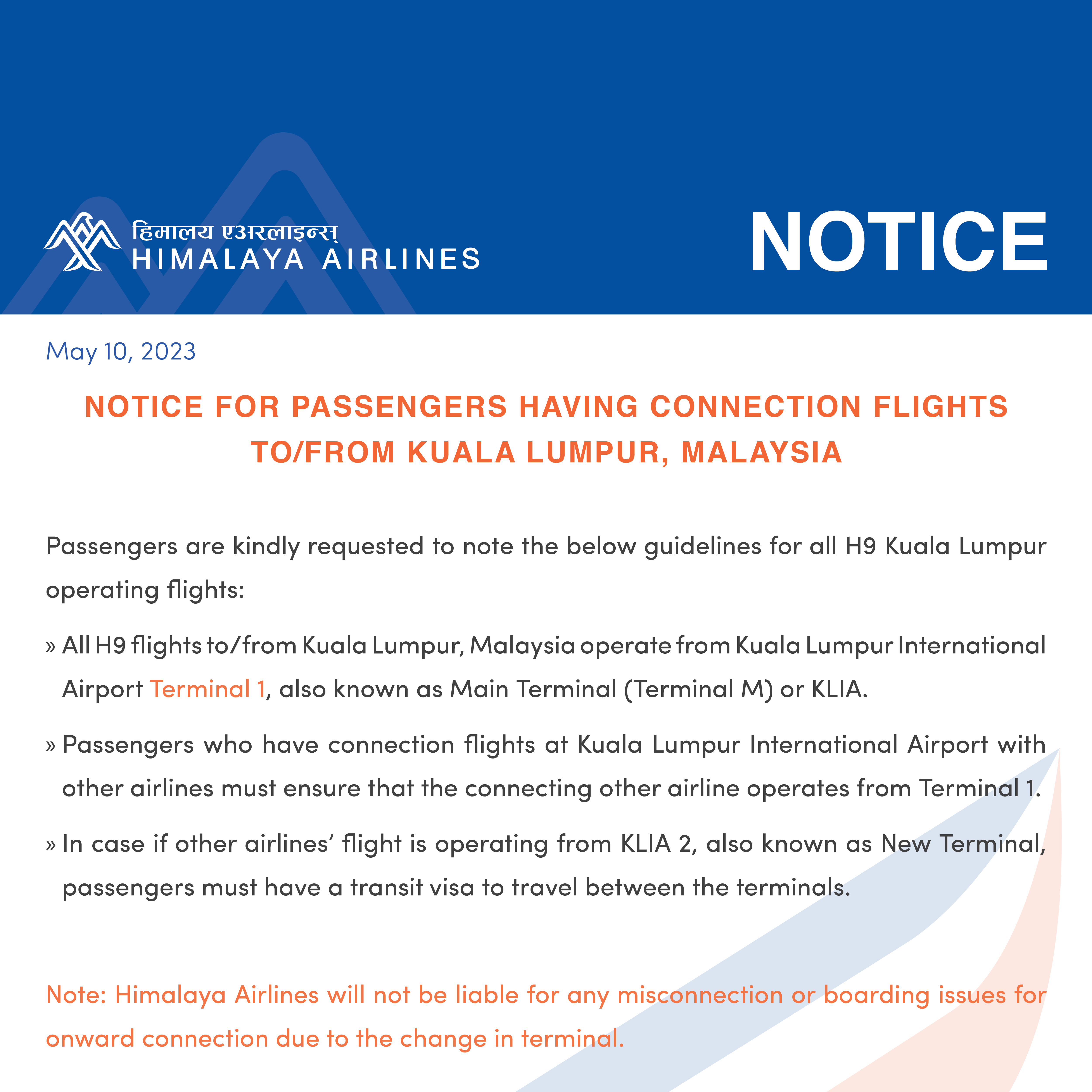 Notice for passengers having connection flights to/from Kuala Lumpur, Malaysia