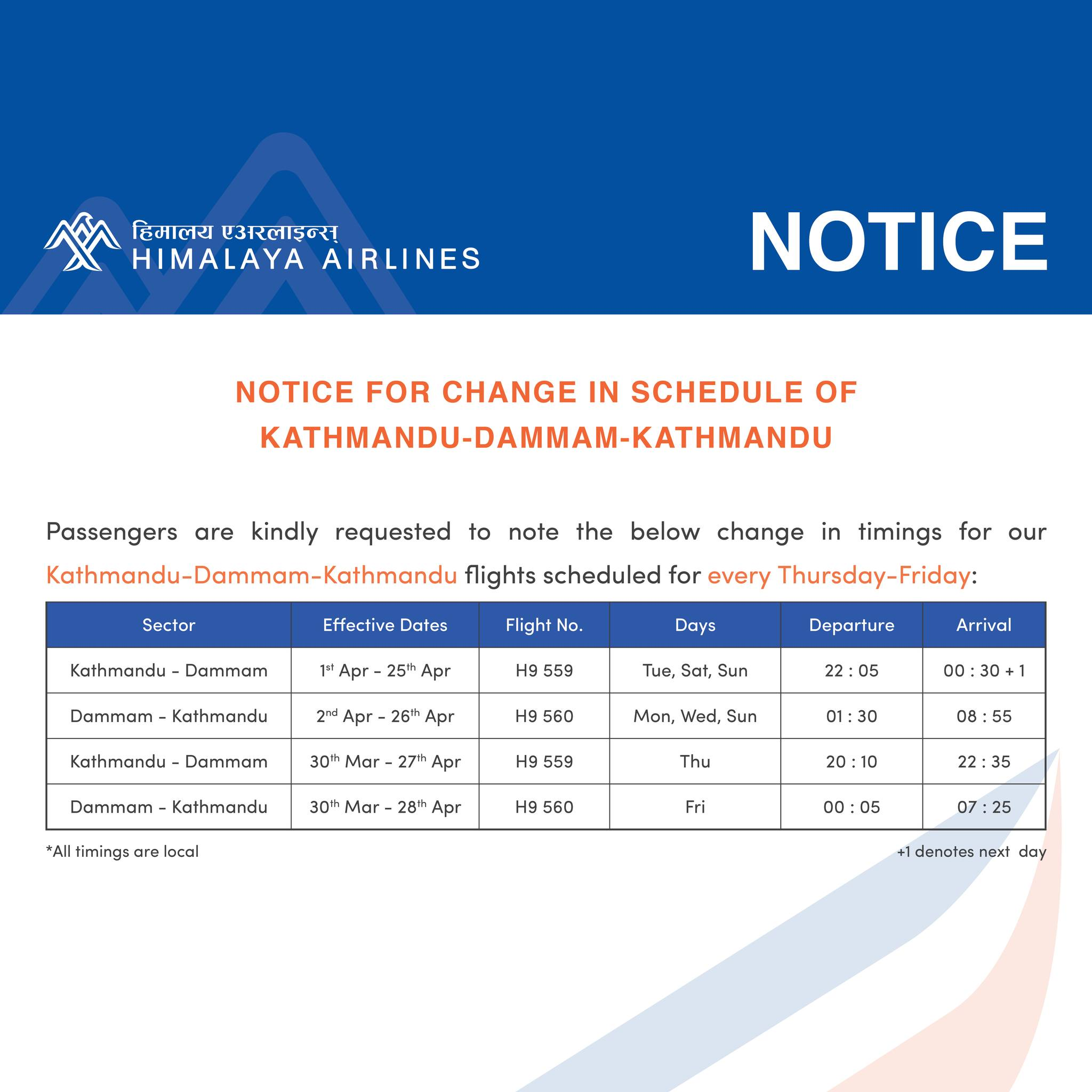 Notice for change in schedule of Kathmandu-Dammam-Kathmandu