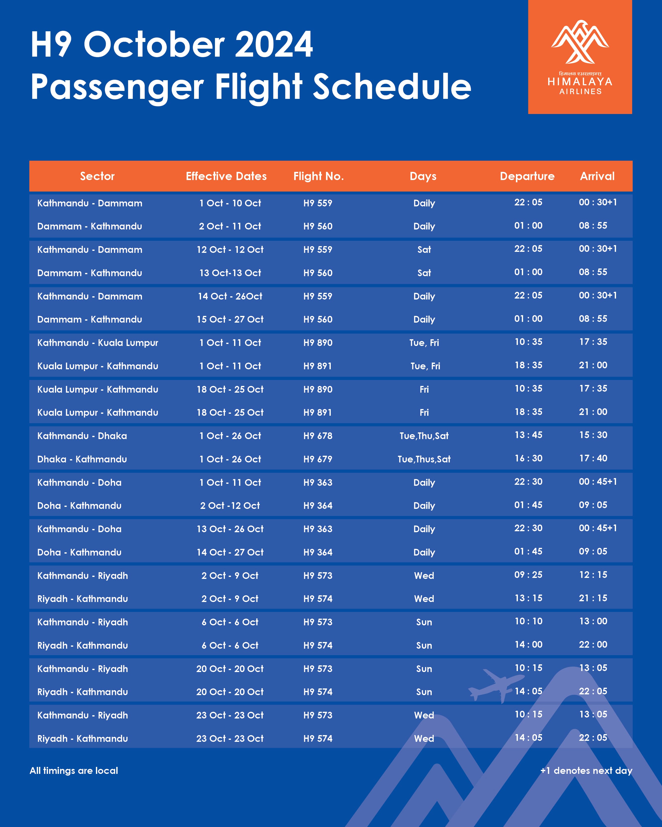 H9 October 2024 Passenger Flight Schedule
