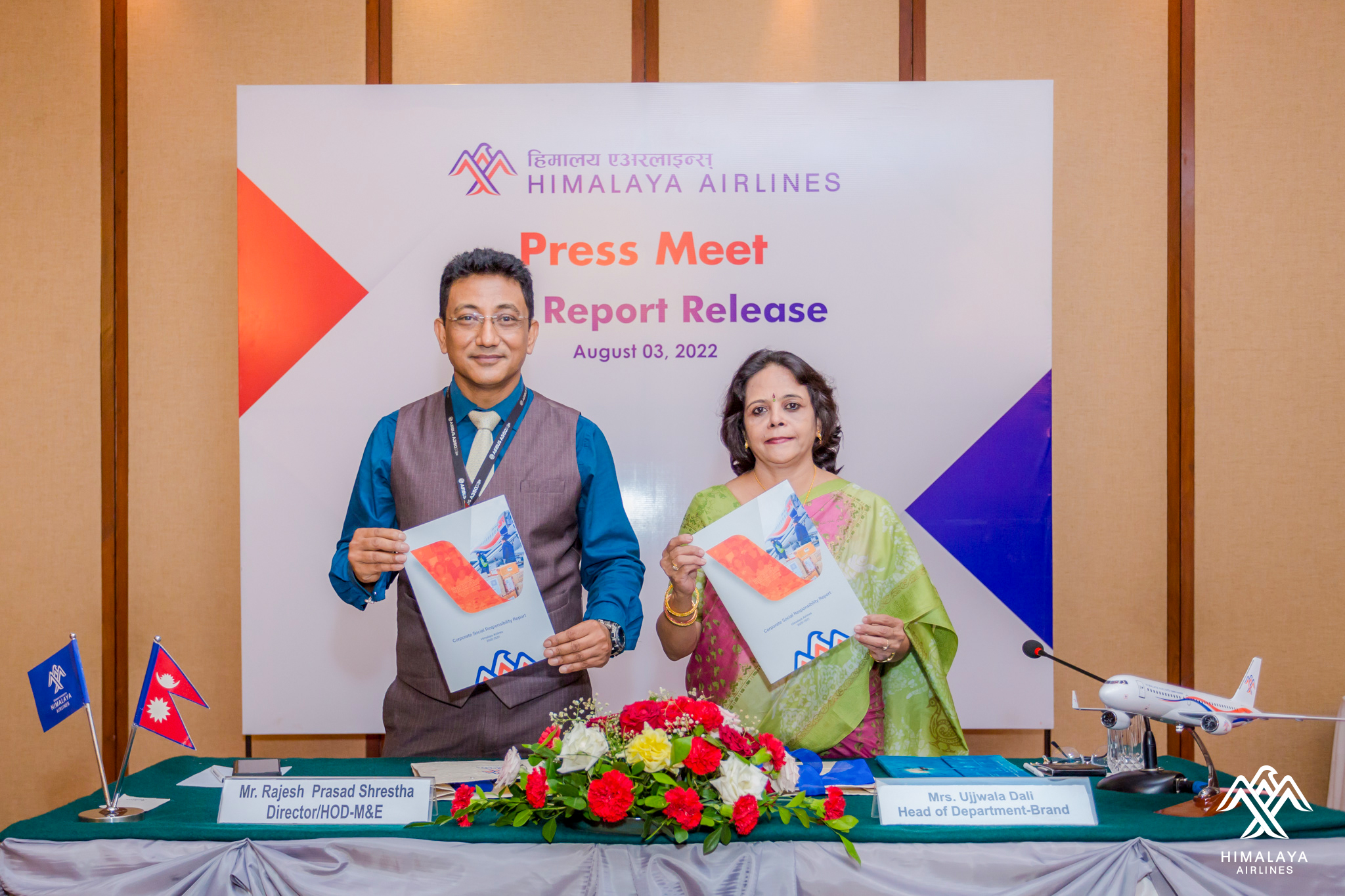 Himalaya Airlines, is always keen in working with stakeholders so as to help navigate the future growth of a safe and sustainable air transport industry and since its initial years of establishment, H9 has been actively engaged in CSR undertakings. Outlining its various CSR initiatives of 2020-2021, the airlines released its CSR Report for the pandemic years during a Press Meet held at Hotel Radisson on Aug 03, 2022.