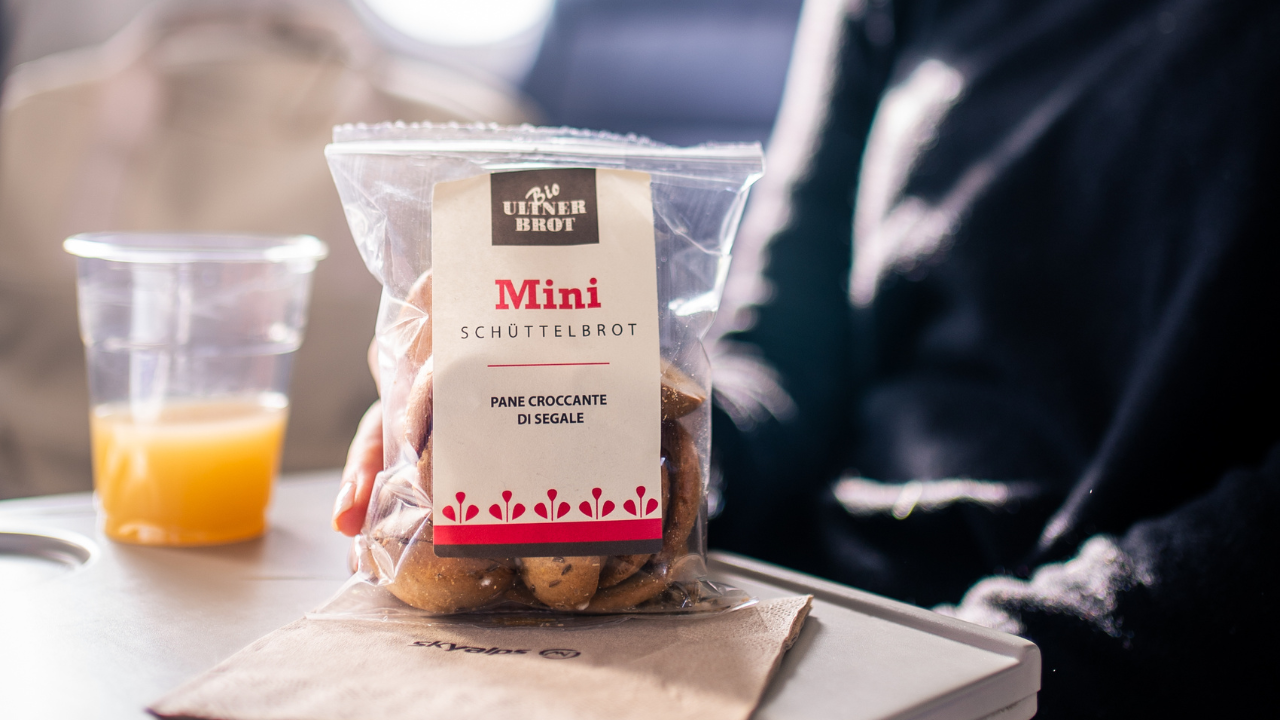 Mit uns genießen Sie Südtirol nicht nur durch das Fenster, sondern schon an Bord: Wir servieren ausschließlich sorgfältig ausgewählte Produkte aus Südtirol – vom Schüttelbrot über cremigen Joghurt bis zum Glas Südtiroler Wein. So wird Ihr Flug nicht nur bequem, sondern auch genussvoll.